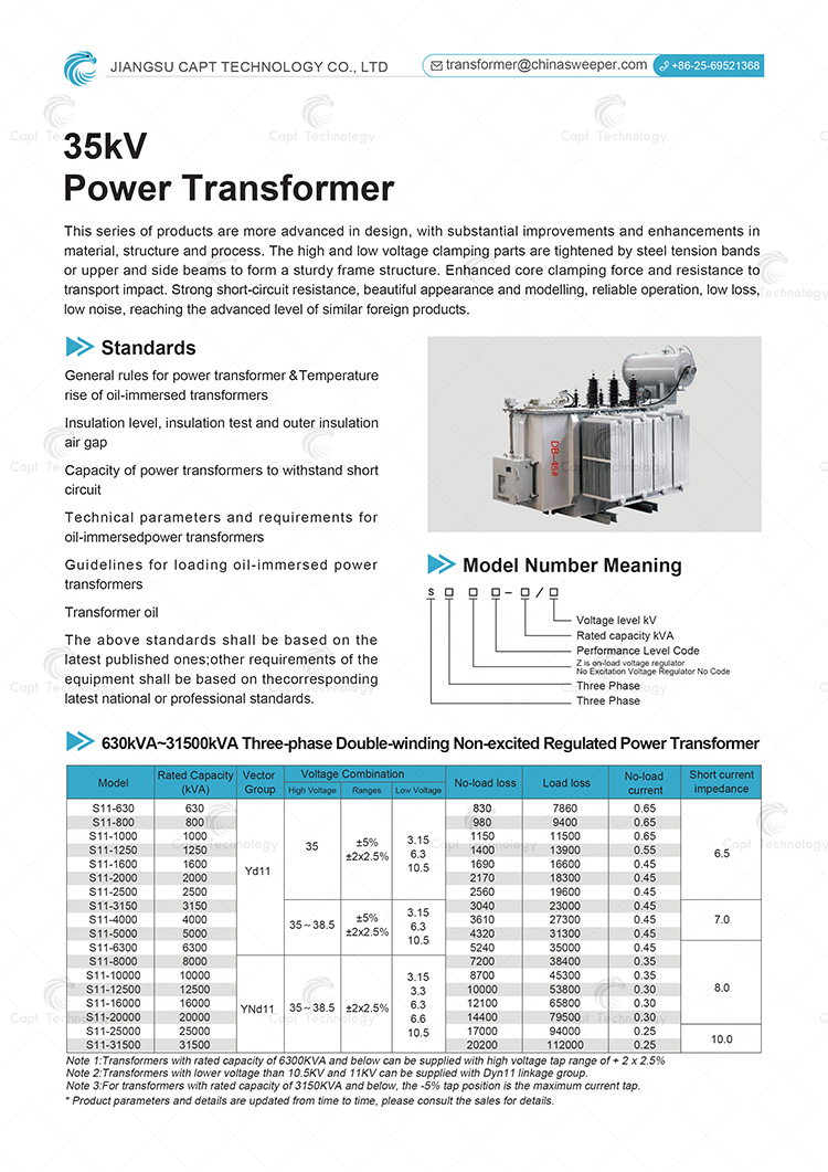 Nanjing, Jiangsu ProvinceThe 35kV class transformer is more advanced in design, with substantial improvements and enhancements in materials, structure and workmanship. The high and low voltage clamping parts are tightened by steel tension bands or upper and side beams to form a strong frame structure. Enhanced core clamping force and resistance to transportation impact. Strong short-circuit resistance, beautiful appearance and modeling, reliable operation, low loss, low noise, reaching the advanced level of similar foreign products.