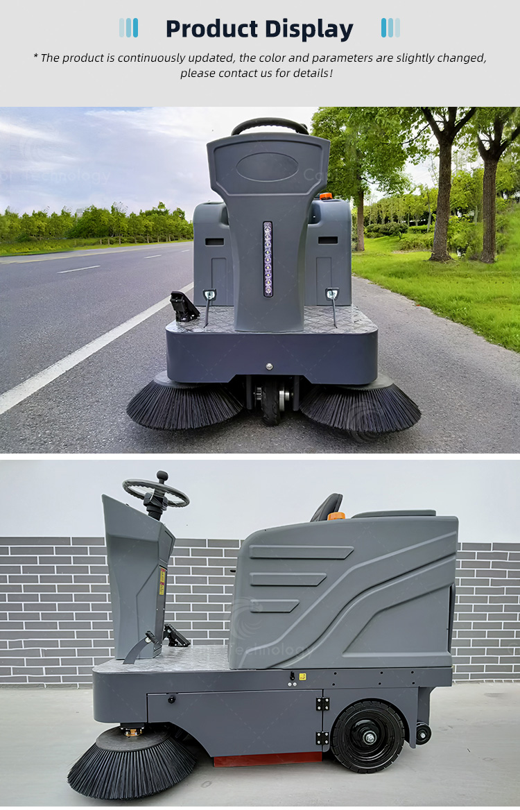 It is a high-performance cleaning machine designed for efficient dust removal and ground maintenance in industrial and commercial environments. Equipped with a water spray system, it effectively suppresses dust while sweeping, ensuring a cleaner and healthier workspace.  It can clean up dust, stones, wood chips, glass and other garbage. It is suitable for use on the flat ground, such as cement, asphalt, ceramic tile, marble, etc.