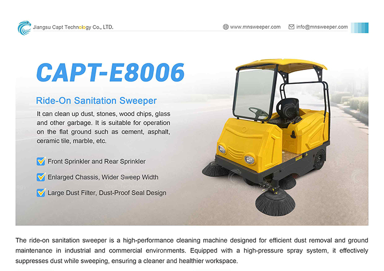 The driving sweeper has high cleaning efficiency and can clean up dust, stones, wood chips, glass and other garbage. It is suitable for operation on the flat ground such as cement, asphalt, ceramic tile, marble, etc., and can clean dust, stones, wood chips, glass and other garbage.
