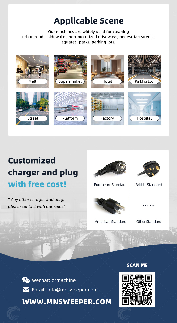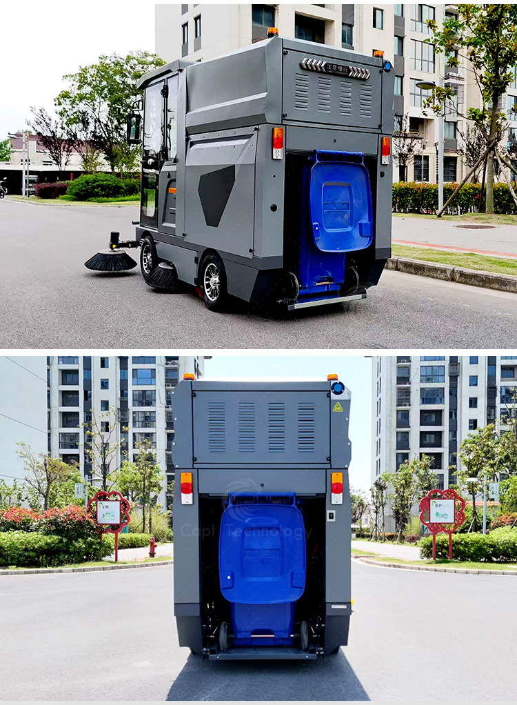 This fully enclosed four-wheel drive sweeper is an electric garbage sweeper that integrates cleaning, vacuum and watering. Mechanized operation not only has high cleaning efficiency and good results, but also can clean everything, such as dust sand, stones, leaves, and cigarette boxes, bottles and etc.