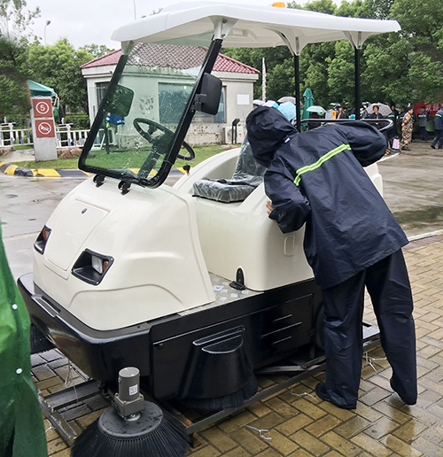 The municipal company purchased our electirc sweep machine and the workers were installing.
