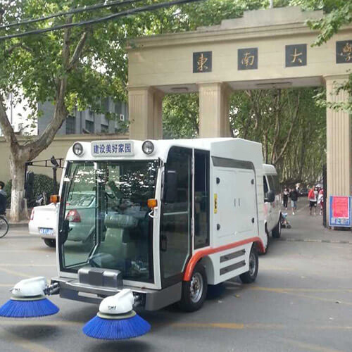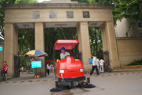 Our driveway sweepers electric power sweepers were cleaning the road in college in Nanjing.