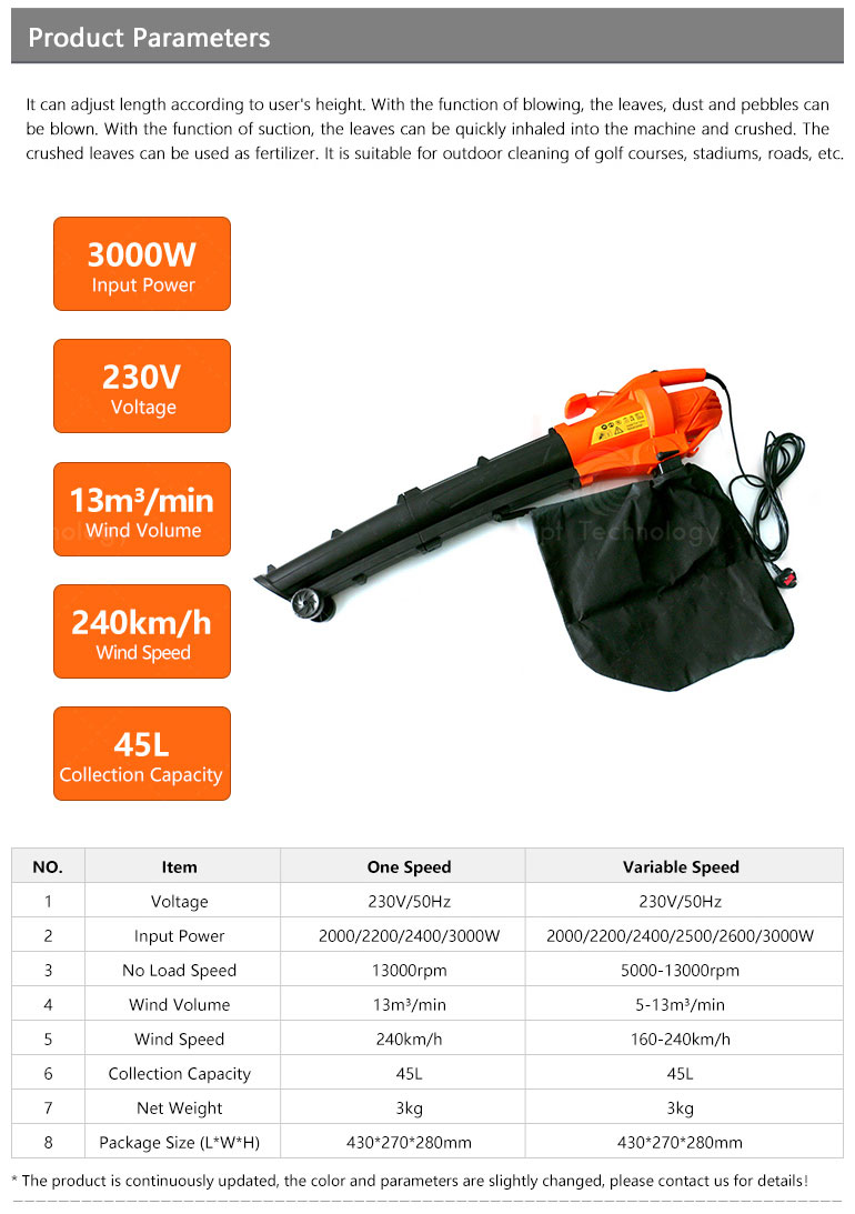 Nanjing, Jiangsu Provinceleaf blower can adjust length according to user's height. With the function of blowing, the leaves, dust and pebbles can be blown. With the function of suction, the leaves can be quickly inhaled into the machine and crushed. The crushed leaves can be used as fertilizer. It is suitable for outdoor cleaning of golf courses, stadiums, roads, etc. It can clean the leaves, sand, snow and other garbage efficiently. Clean gardens and green belts are easier and more efficient.