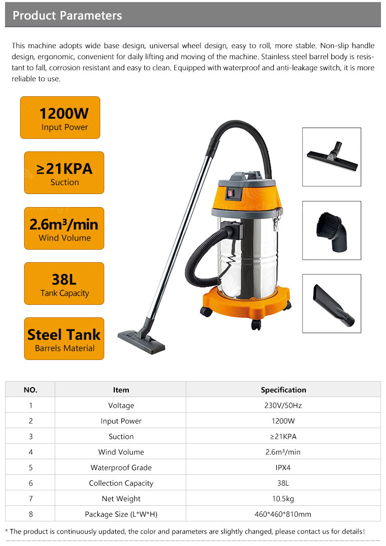 Nanjing, Jiangsu ProvinceCAPT-B38-A is wet and dry dual-purpose dust suction and water suction machine. It is suitable for hotels, large workshops, factories, shopping malls, car wash and other industries. The machine designed with strong suction, stainless steel barrel, crush resistance, durable, longer life.