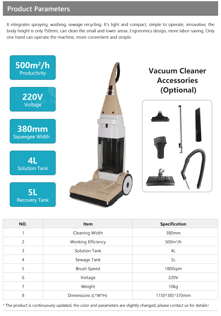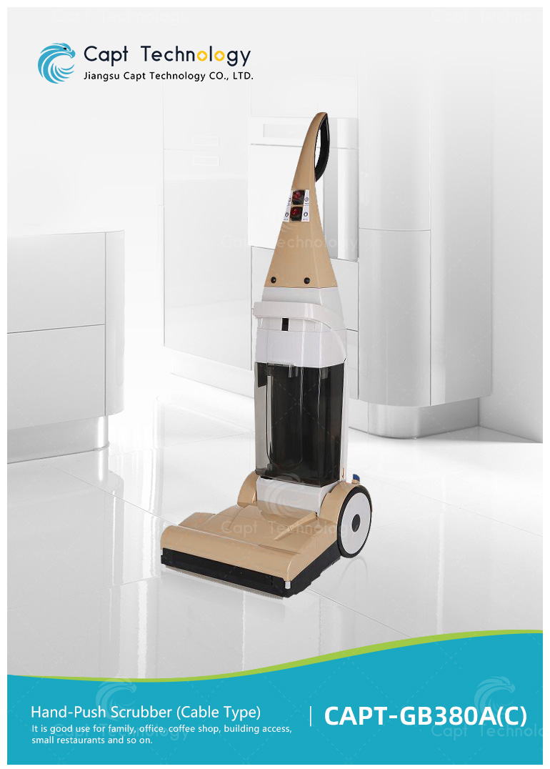 CAPT-GB380A(C) is a mini-cable type floor scrubber machine, it's light and compact, simple to operate, innovative, the body height is only 150mm, can clean the small and lower areas. Be good use for family, office, coffee shop, building access, small restaurants and so on.