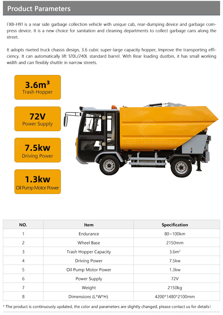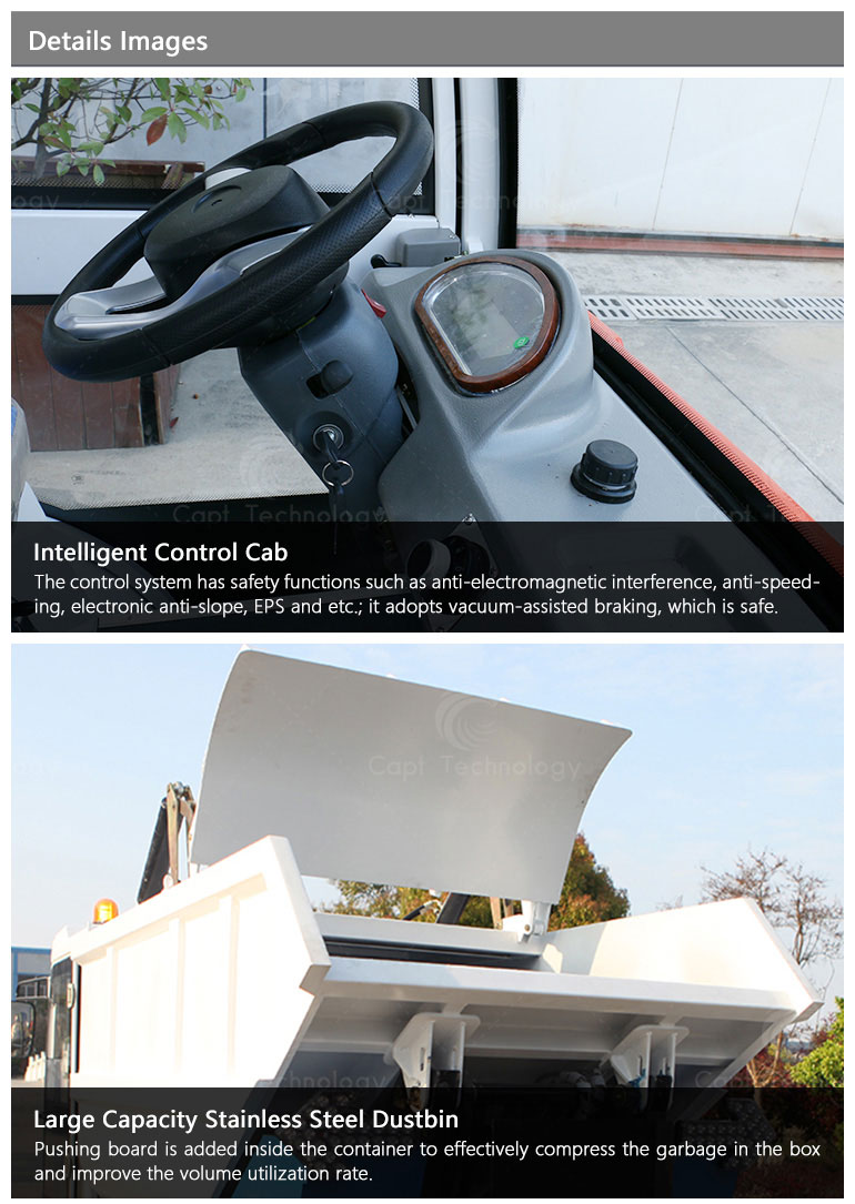 CAPT-H91 is a rear side garbage collection vehicle with unique cab. It is a new choice for cleaning departments to collect garbage and transport it in airport, dock and parking lot. It's use for on site transport Vehicle.