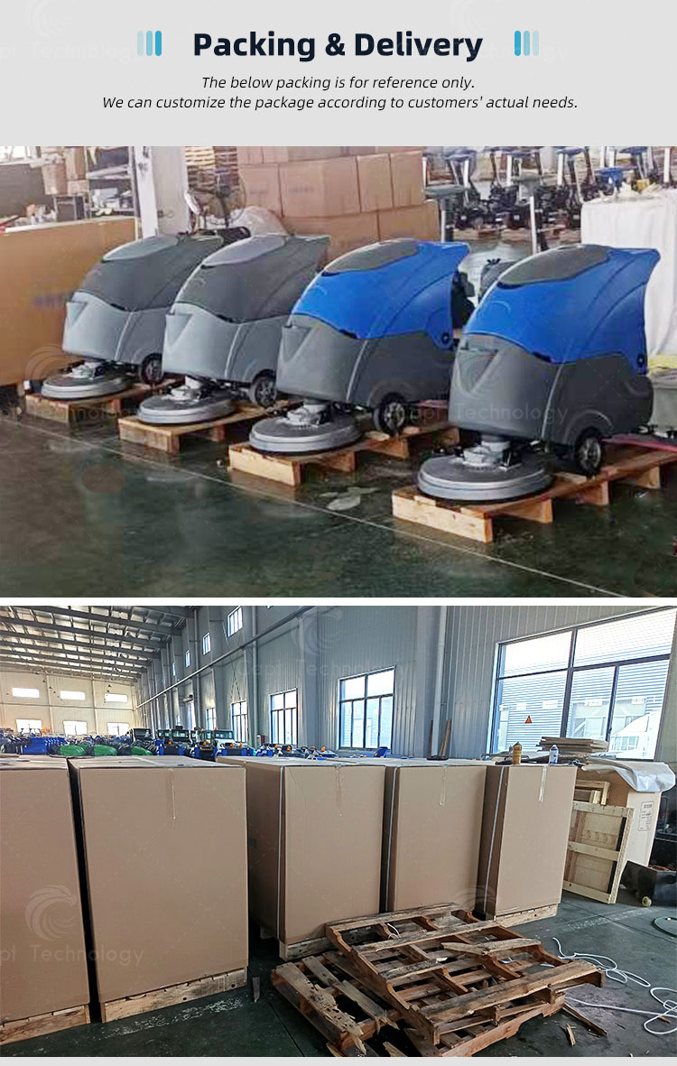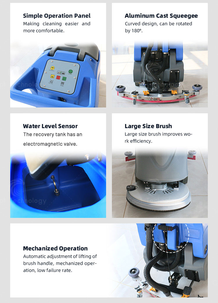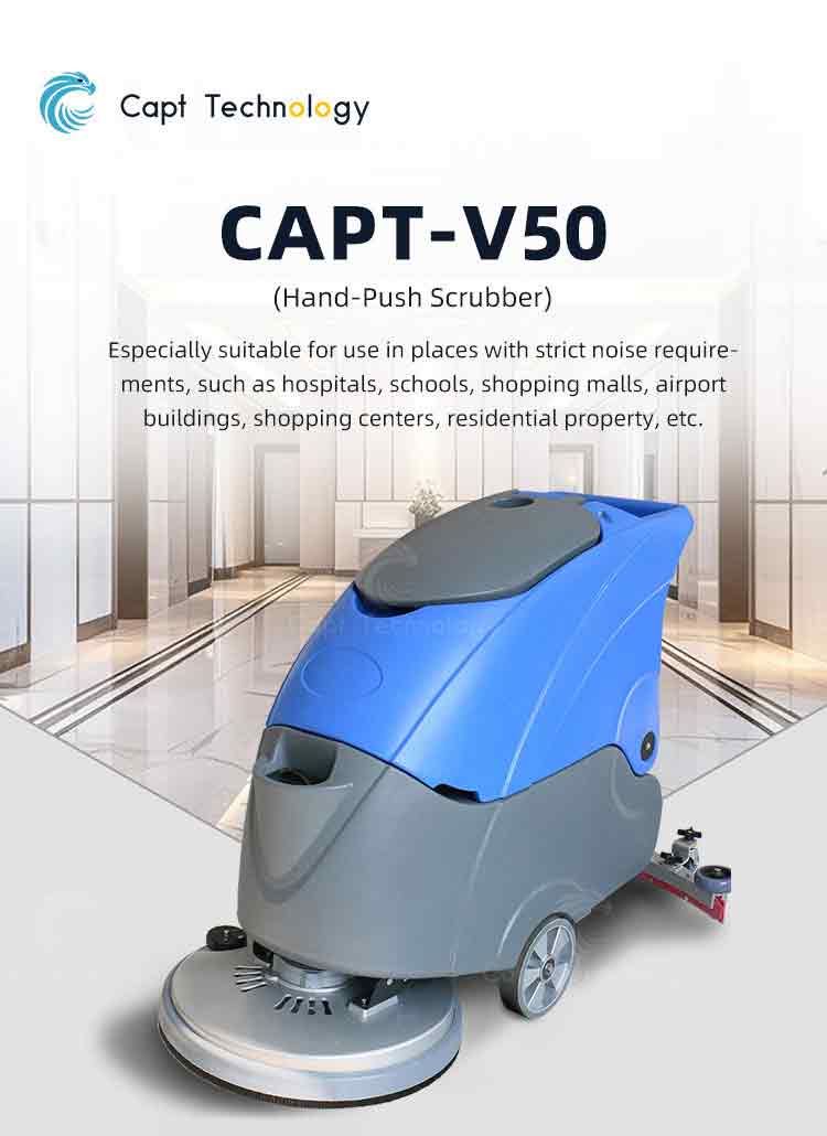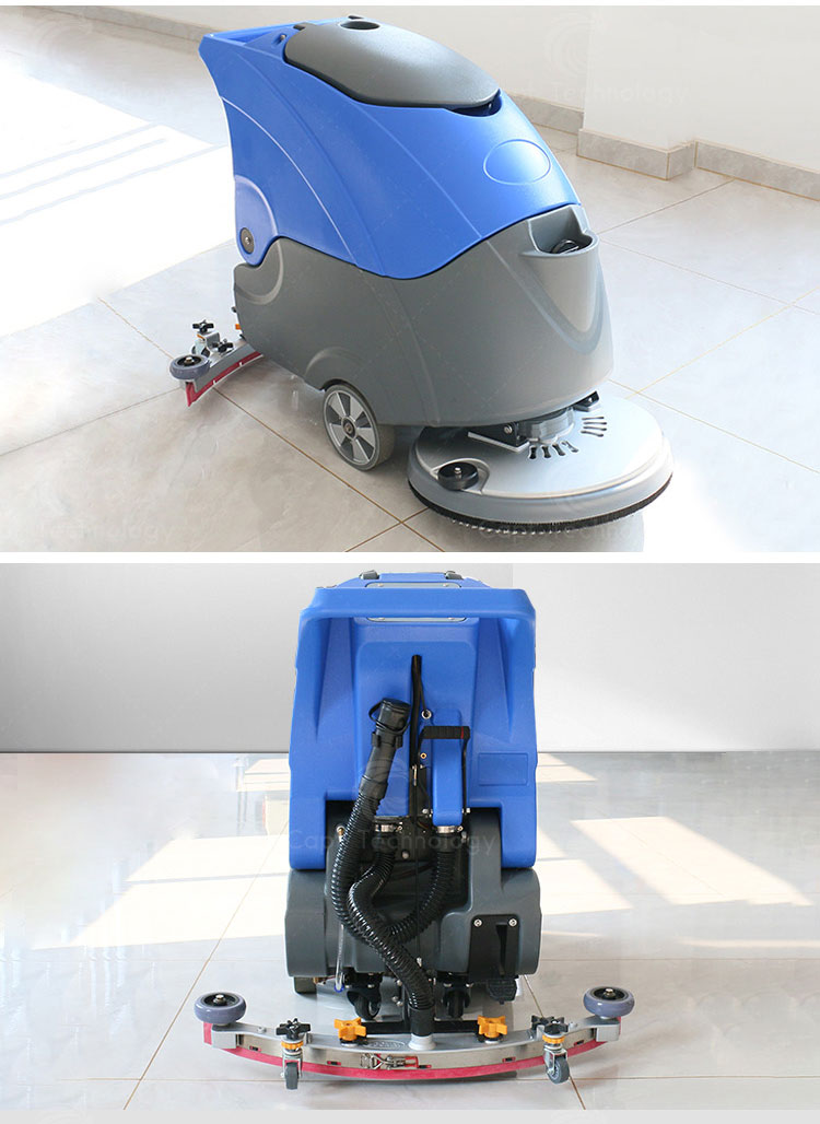 The hand-push scrubber combines washing, vacuuming and drying, especially for area cleaning of ceramic tile, marble, epoxy resin and cement floors, which is widely used in supermarket, government office, hospital, hotel, terminal building, subway platform and etc.