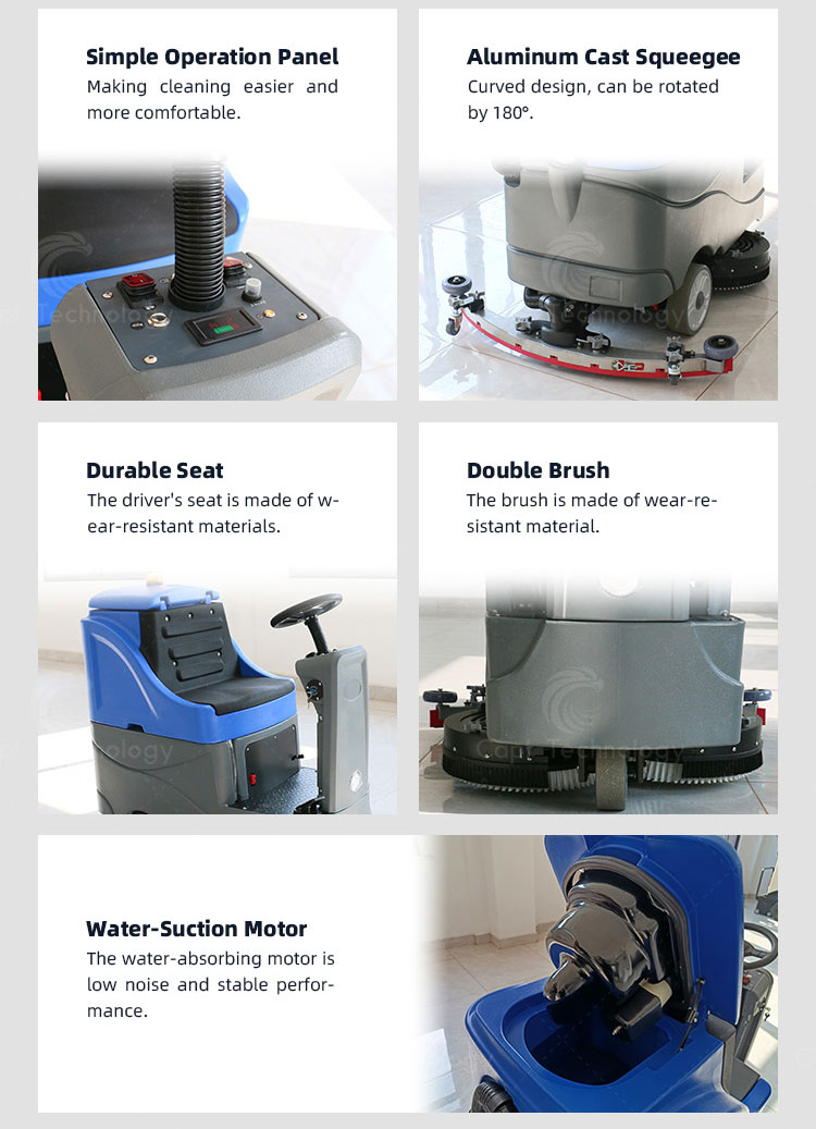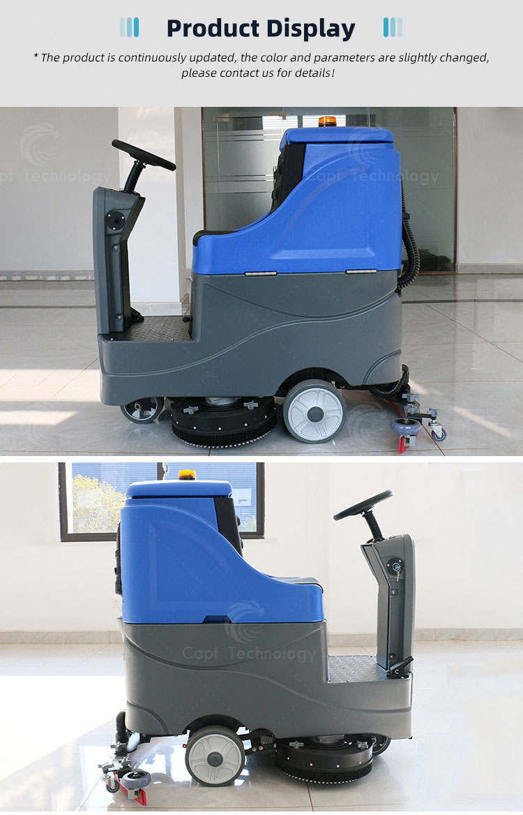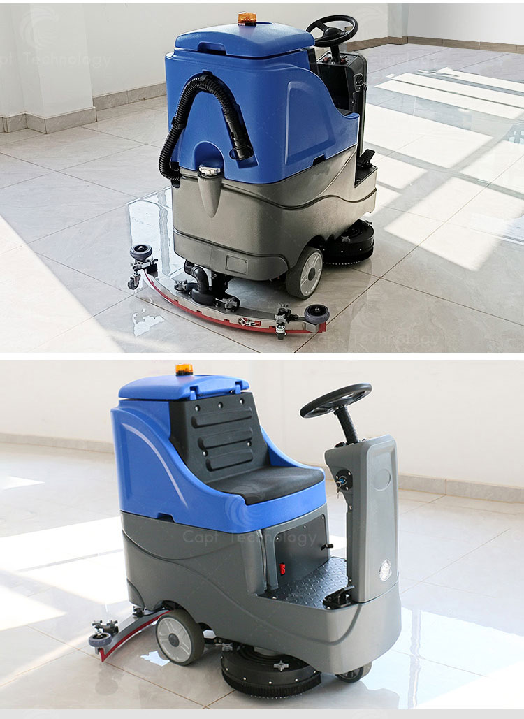 The driving type scrubber sets up as one of washing and sucking dry machine, fast cleaning the ground, especially suitable for ceramic tile, marble, epoxy resin, cement and other large area cleaning, such as factories, square, supermarket, government, hospital, school, hotel, airport, subway, terminals and other places.