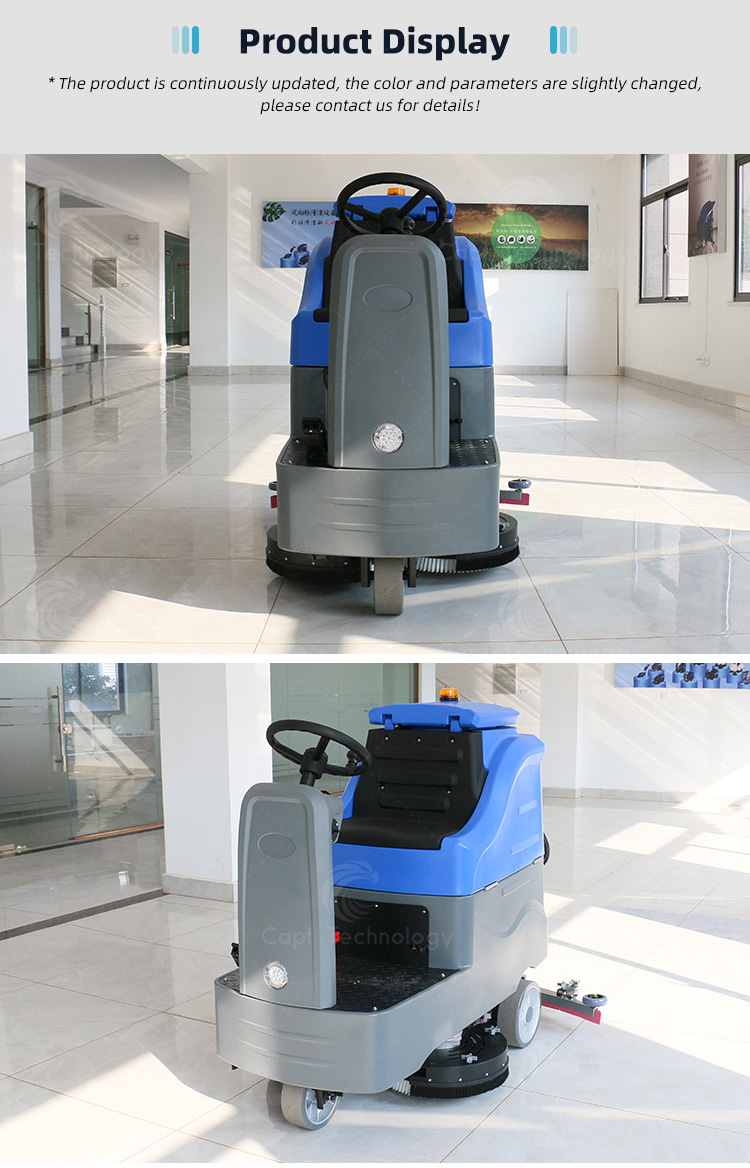 The driving type scrubber sets up as one of washing and sucking dry machine, fast cleaning the ground, especially suitable for ceramic tile, marble, epoxy resin, cement and other large area cleaning, such as factories, square, supermarket, government, hospital, school, hotel, airport, subway, terminals and other places.