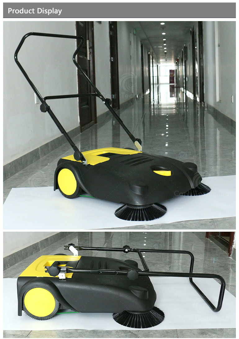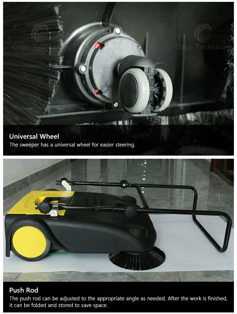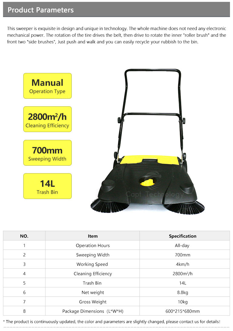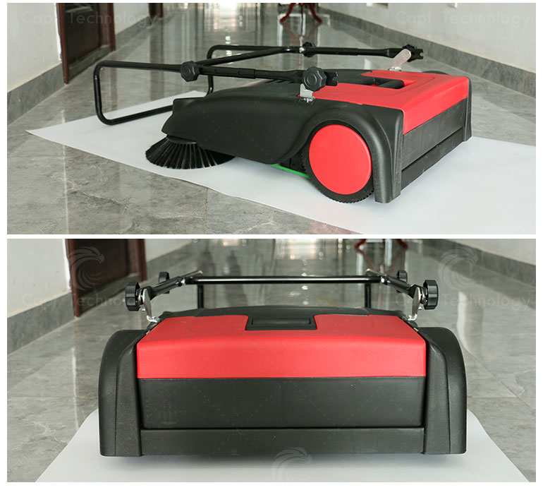 Nanjing, Jiangsu ProvinceThis sweeper is exquisite in design and unique in technology. The whole machine does not need any electromechanical power. The rotation of the tire drives the belt, then drive to rotate the inner "roller brush" and the front two "side brushes", Just push and walk and you can easily recycle your rubbish to the bin.
