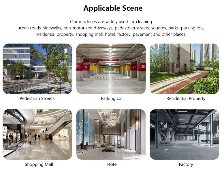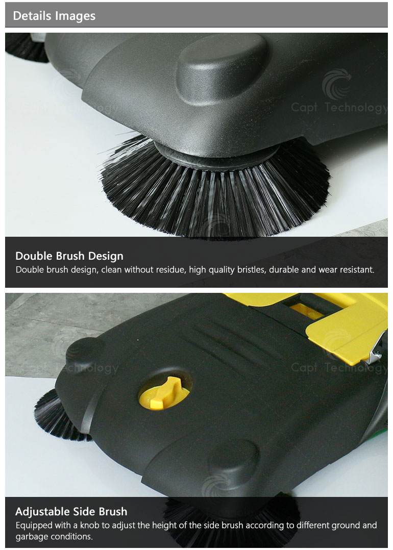 2. The main brush and side brushes are made of high-density material, wear-resisting, prolonging service life. The height can be adjusted according to the ground conditions to ensure the cleaning effect.