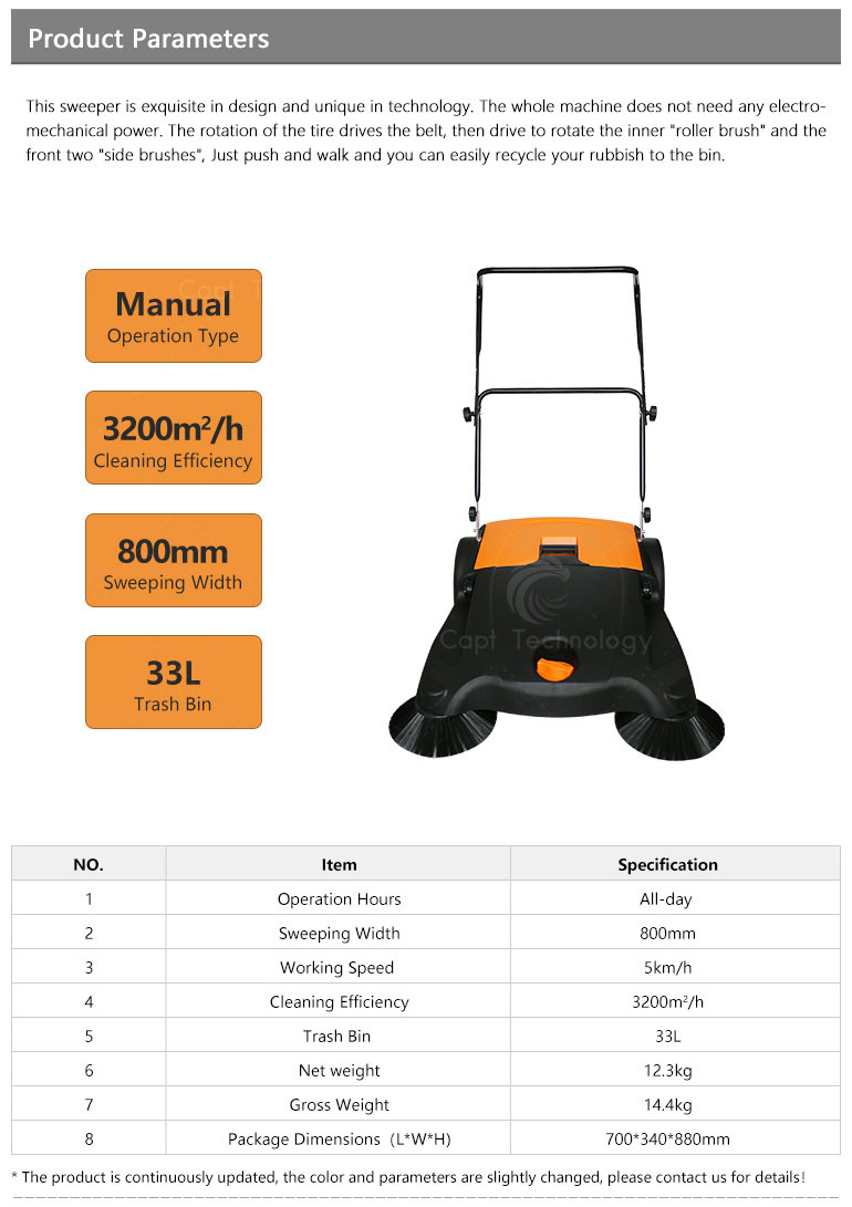 CAPT40 manual sweeper is a kind of unpowered cleaner and environmental protection product.