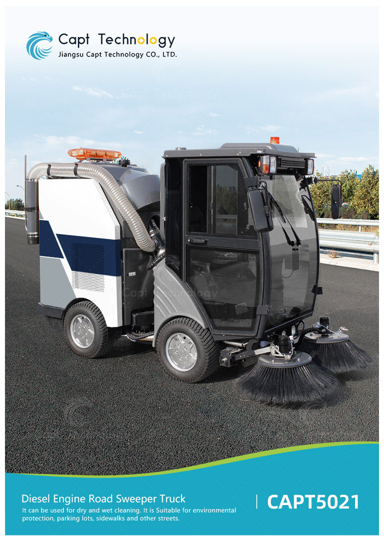 CAPT5021 is a small sweeper with special chassis integral structure. It has superior performance, beautiful appearance and flexible operation. 5021 road sweeper adopts imported diesel engine, and all operations are completed by hydraulic transmission.