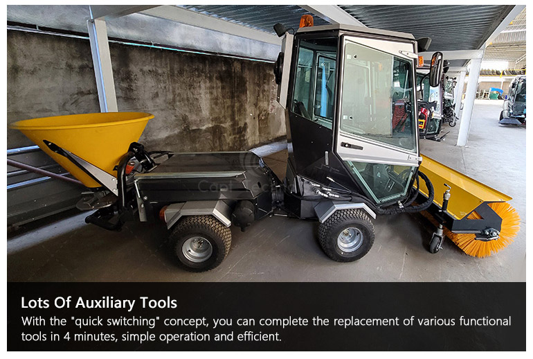It’s widely used in cleaning work of urban roads, sidewalks, non-motorized roads, pedestrian streets, squares, parks, parking lots and other places. Especially suitable for narrow curved road cleaning.