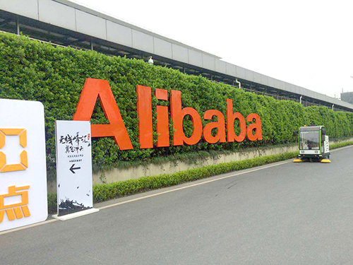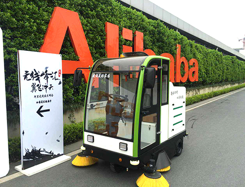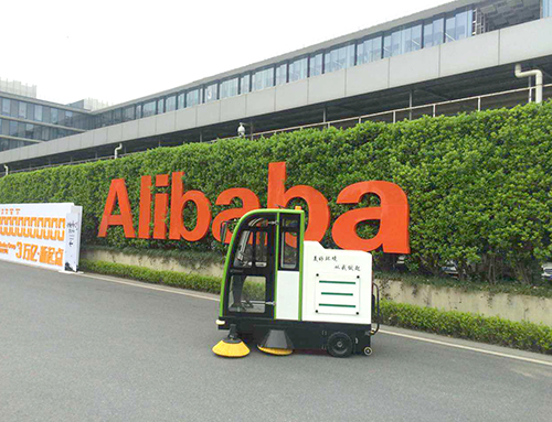 Our ride on cleaning machine works in the Alibaba campus.
