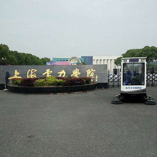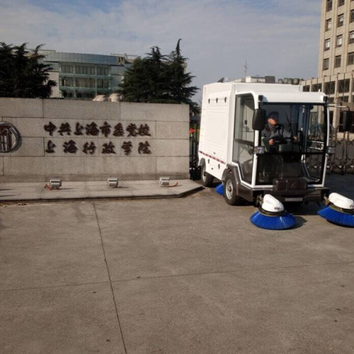 Road cleaning machine floor sweeper were ordered by college in Shanghai, worker was cleaning the road by cleaning machine.