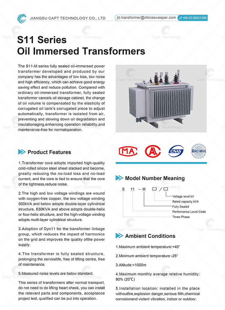 Nanjing, Jiangsu ProvinceThe S11-M series fully sealed oil-immersed power transformer developed and produced by our company has the advantages of low loss. low noise and high efficiency, which can achieve good energy saving effect and reduce pollution.