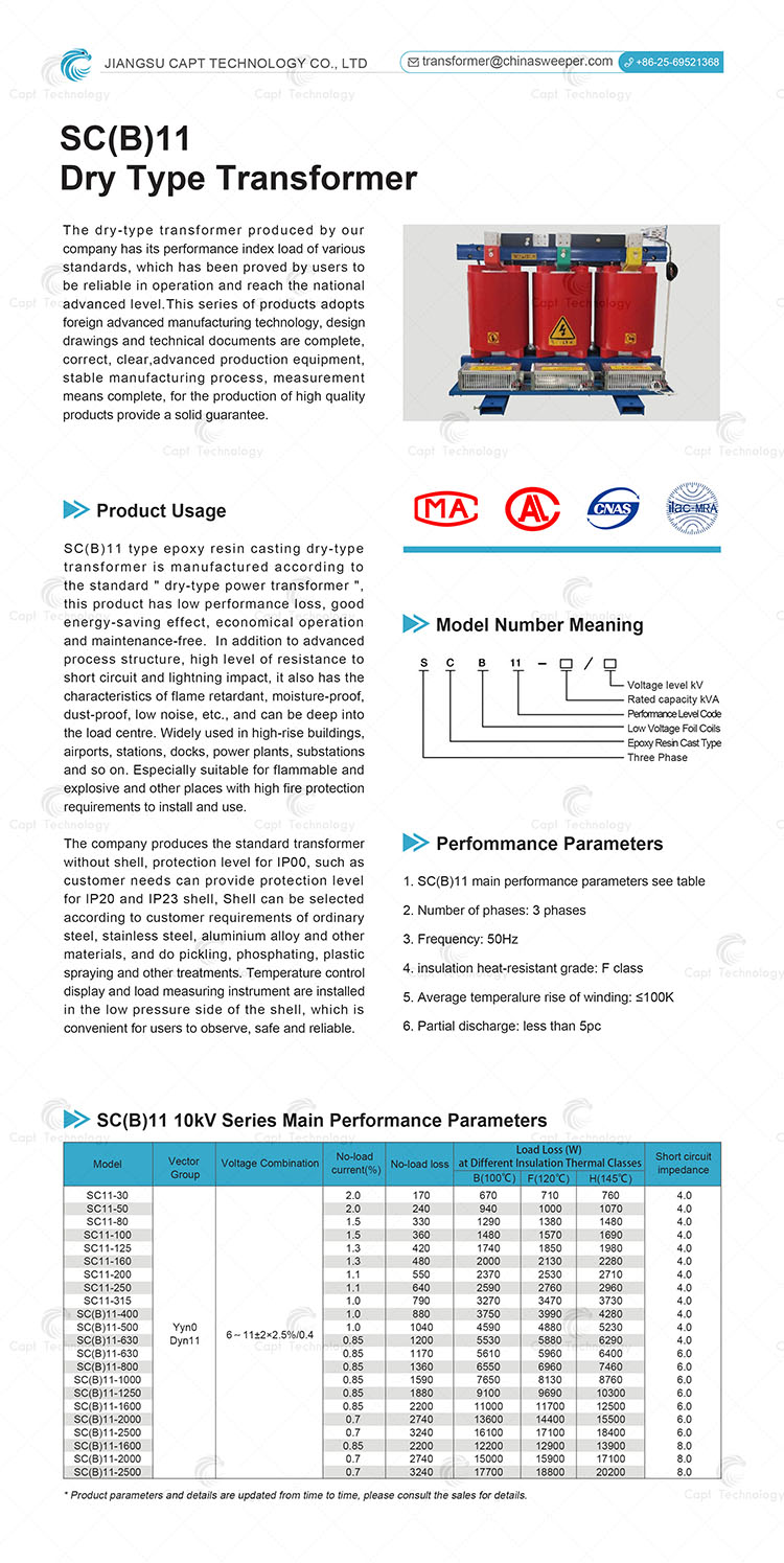 ChinaSC(B)11 type epoxy resin casting dry-type transformer manufactured according to the standard " dry-type power transformer this product