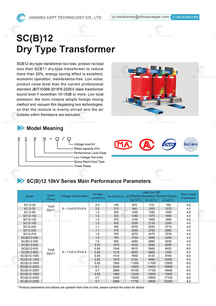 Nanjing, Jiangsu ProvinceSCB12 dry-type transformer low loss: product no-load loss than SCB11 dry-type transformer to reduce more than 20%, energy saving effect is excellent, economic operation,maintenance-free. Low noise product noise level than the current professional standard JB10088-2016"6-220KV class transformer sound level Y lower than 10-15dB or more. Low local emission:the resin mixture adopts foreign mixing method and vacuum film degassing two technologies so that the mixture is evenly stirred and the air bubbles within the mixture are excluded.