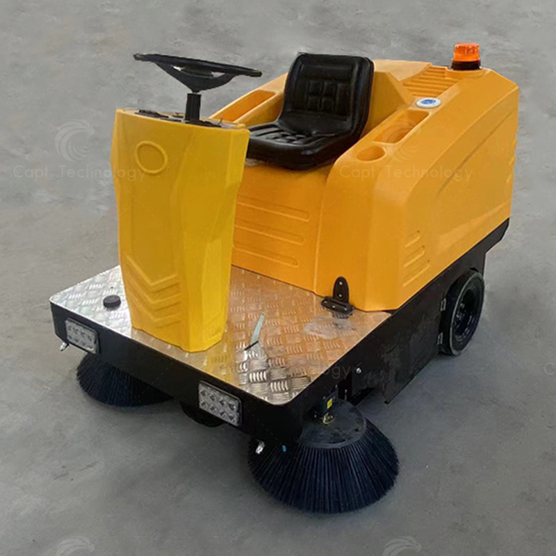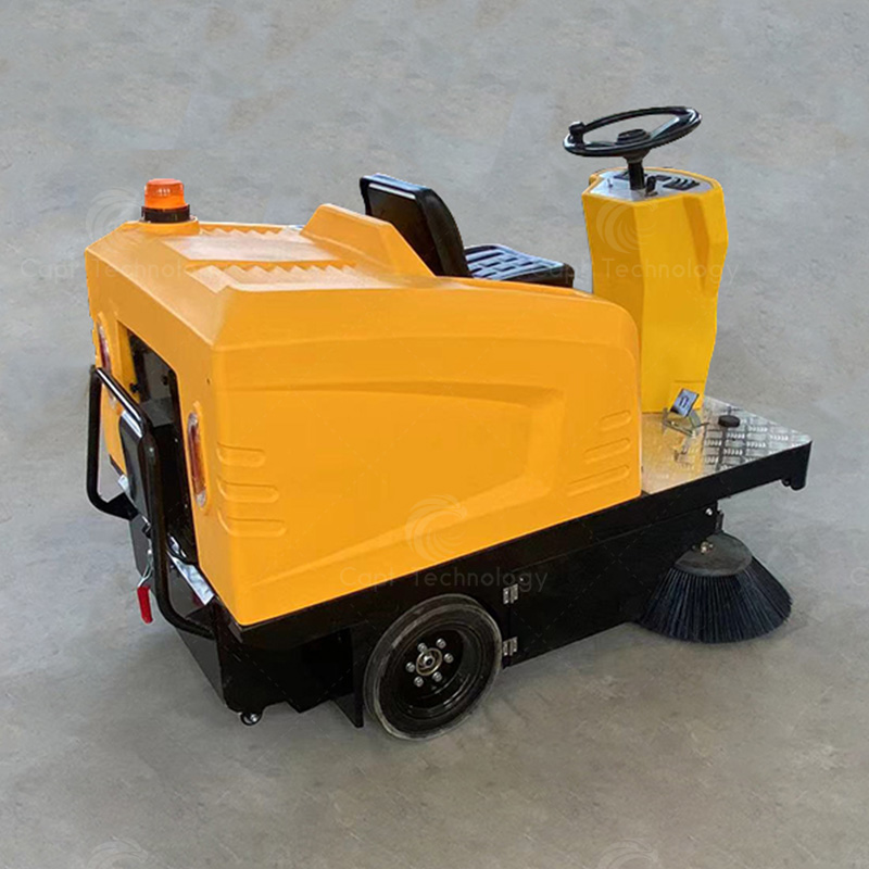 CAPT-E8006 driving sweeper has high cleaning efficiency and can clean up dust, stones, wood chips, glass and other garbage. It is suitable for operation on the flat ground such as cement, asphalt, ceramic tile, marble, etc., and can clean dust, stones, wood chips, glass and other garbage.