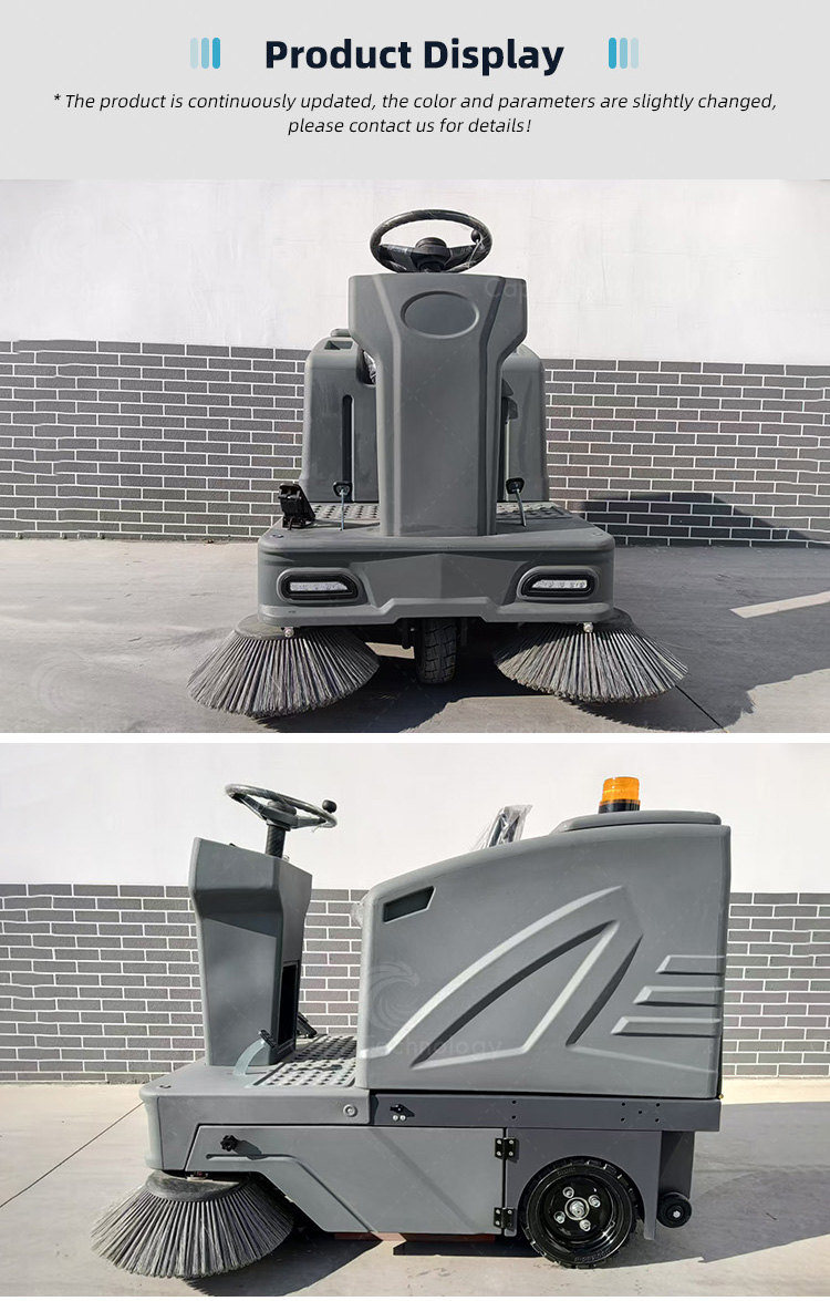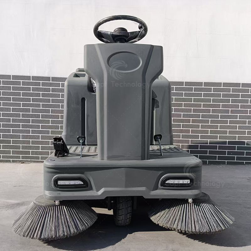 The driving electric sweeper is an automated cleaning machine that combines vacuuming, sweeping, and water spraying functions. Its operation panel is simple and practical, ensuring user-friendly operation. Equipped with a wheel-mounted dustbin for easy emptying.