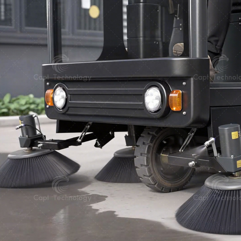 CAPT-E900 enclosed sweeper adopts fully enclosed cab design, and it is mostly suitable for using in extremely cold and harsh environment. Mostly for outdoor use, suitable for high-end residential areas, resorts, scenic areas and other large areas of cleaning.