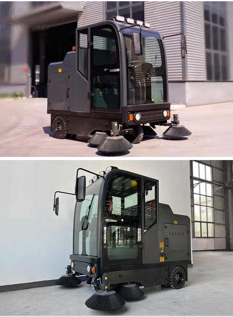 CAPT-E900 enclosed sweeper adopts fully enclosed cab design, and it is mostly suitable for using in extremely cold and harsh environment. Mostly for outdoor use, suitable for high-end residential areas, resorts, scenic areas and other large areas of cleaning.