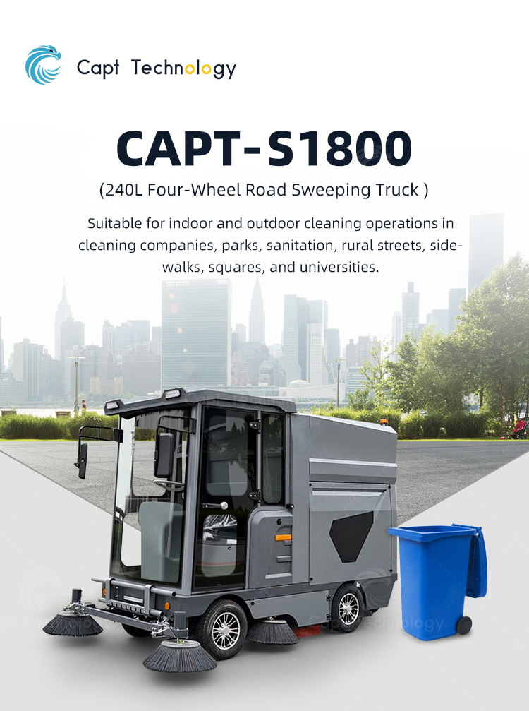 This fully enclosed four-wheel drive sweeper is an electric garbage sweeper that integrates cleaning, vacuum and watering. Mechanized operation not only has high cleaning efficiency and good results, but also can clean everything, such as dust sand, stones, leaves, and cigarette boxes, bottles and etc.