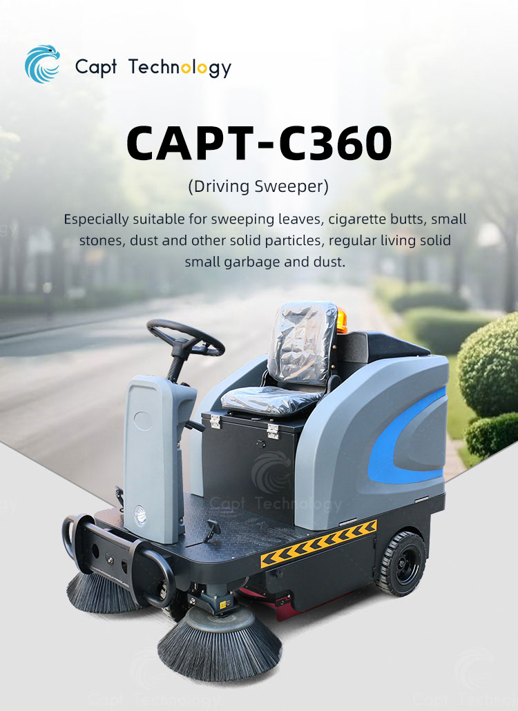 The driving electric sweeper is an automated cleaning machine that combines vacuuming, sweeping, and water spraying functions. Its operation panel is simple and practical, ensuring user-friendly operation. Equipped with a wheel-mounted dustbin for easy emptying.
